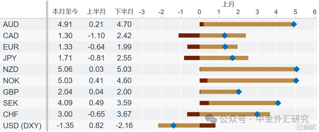 市场风险偏好值得继续关注1月外汇市场在风险偏好的扰动下出现了较动,格陵兰问题对市场的影响在有所定价后可能暂且告一段落,但潜在的其他不确定因素(比如特朗普对伊朗问题的处理方式)值得继续关注。美股1月总体虽然依旧处于历史高位,但我们不能排除如果地缘政治再次出现扰动后,风险资产可能会出现一定的下行,而在这种情况下,传统避险货币比如瑞郎和日元可能会有更好的表现。
