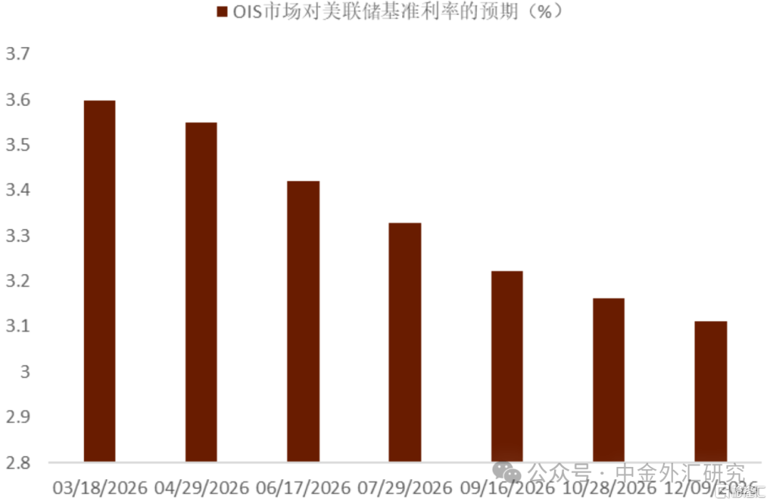 1月FOMC会议如期按兵不动内部分歧有所缓解且整体基调偏鹰美联储1月FOMC会议如期按兵不动[4] 。本次利率决议有两票反对,比上次的3票反对票少1票,其中,沃勒首次投出反对票,和鸽派美联储理事米兰的降息主张一致。货币政策声明的措辞出现了调整[5] :会议声明表示,经济活动稳步扩张,而非上次的表述是“扩张缓和”,而就业方面,本次声明改为:失业率显示企稳迹象,同时也删除了“近几个月就业下行风险已增加”的表述;通胀方面,本次声明重申通胀压力仍然略微高企。随后鲍威尔在会后的发布会上,同样延续了“审慎观望数据”的政策指引,并没有释放关于3月可能降息的信号。从鲍威尔的表态来看,我们认为其对风险平衡的观点有所变化:他承认“通胀上行风险和就业下行风险可能都有所减弱”而“关税对商品价格的影响可能会逐步见顶”,而这些在我们看来都可能意味着短期内再次降息的必要性已经明显下降。整体看,我们认为本次会议上美联储释放出更偏的信号,市场在本次FOMC会议之后也做出了反应。目前OIS市场对美联储今年6月前的降息预期自月初的35基点下降至仅有20基点,对年内依旧有2次的降息预期(图表16)。