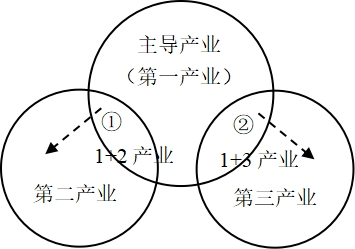 。产业融合的两种方式,依托主导产业的选择,形成以主导产业为基础的第一产业,通过三产融合的两种方式:“第一产业+第二产业”和“第一产业+第三产业”,构建“三产融合”为核心的产业体系。从通过两种产业融合的具体方式,增加产体系附加值以增强产业体系运行,提高其产业竞争力为目的。