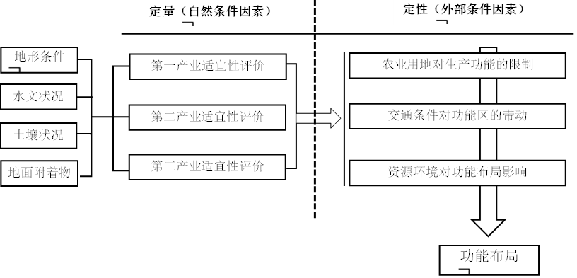 功能布局是现代农业产业园的功能构成在空间地域上的相互关系形成的组合形式,功能布局影响到空间结构的合理性。根据影响因子的客观与否,将现代农业产业园的影响因素分为两大类:自然条件影响和外部条件影响。自然条件因素为影响功能布局的客观性的因子,外部条件因素为受到实际不同的需求而产生的布局的影响。