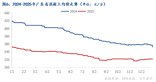 引言:2025年1-11月广东省房地产投资额8146.86亿元,较上年同期相比减少了2173.36亿元,同比下降21.5%,其中住宅投资额6233.51亿元,较上年同期相比减少了1166.01亿元,同比下降16.4%。从整体的房地产开发投资数值来看,同比数据依旧不乐观,整体的房地产建设项目锐减,对于混凝土市场需求支撑力度减弱,房建的锐减,也是明显传导到市场中去,混凝土市场需求萎缩较大,市场竞争激烈后,整体的单价同比有所下跌。